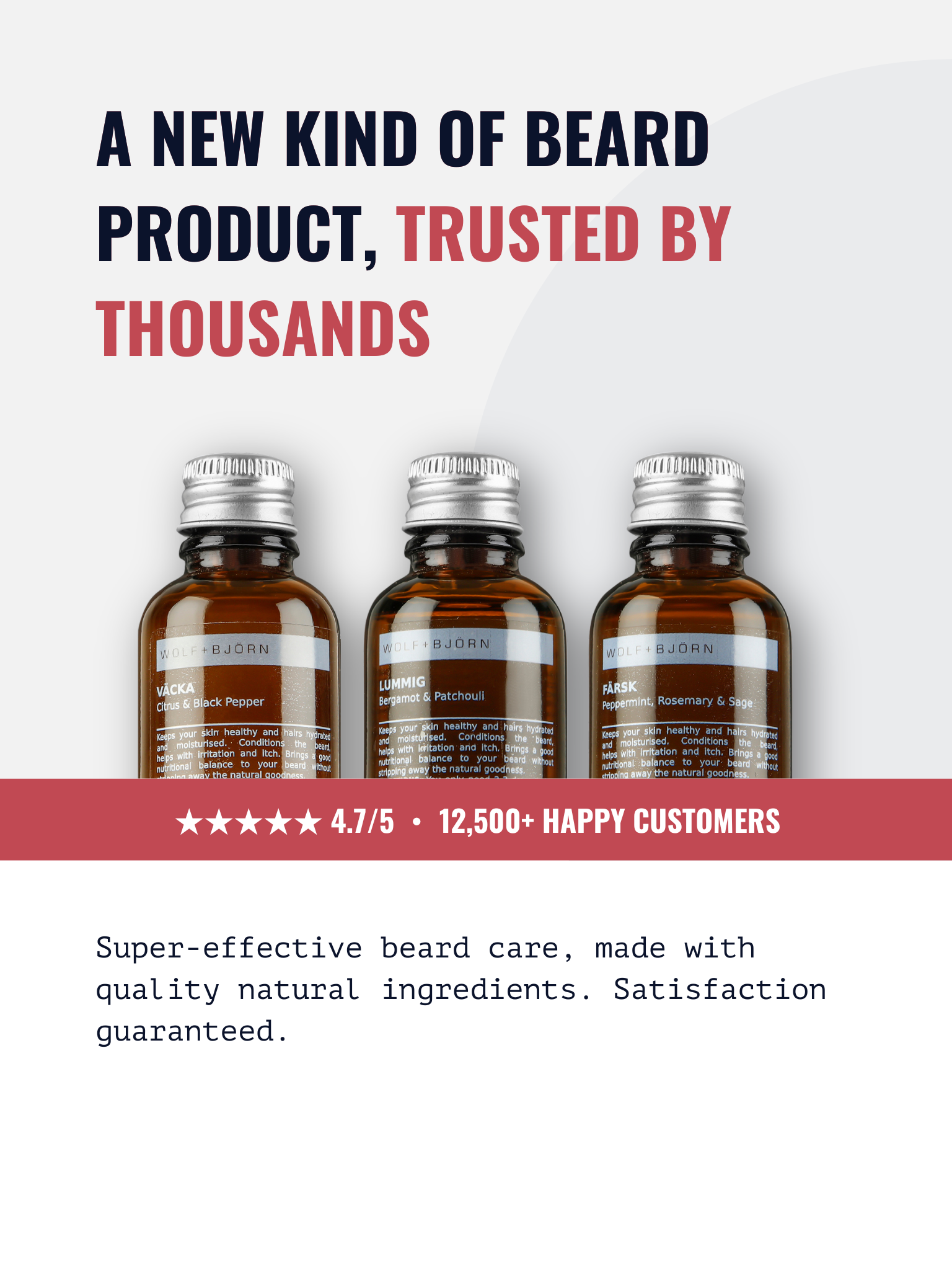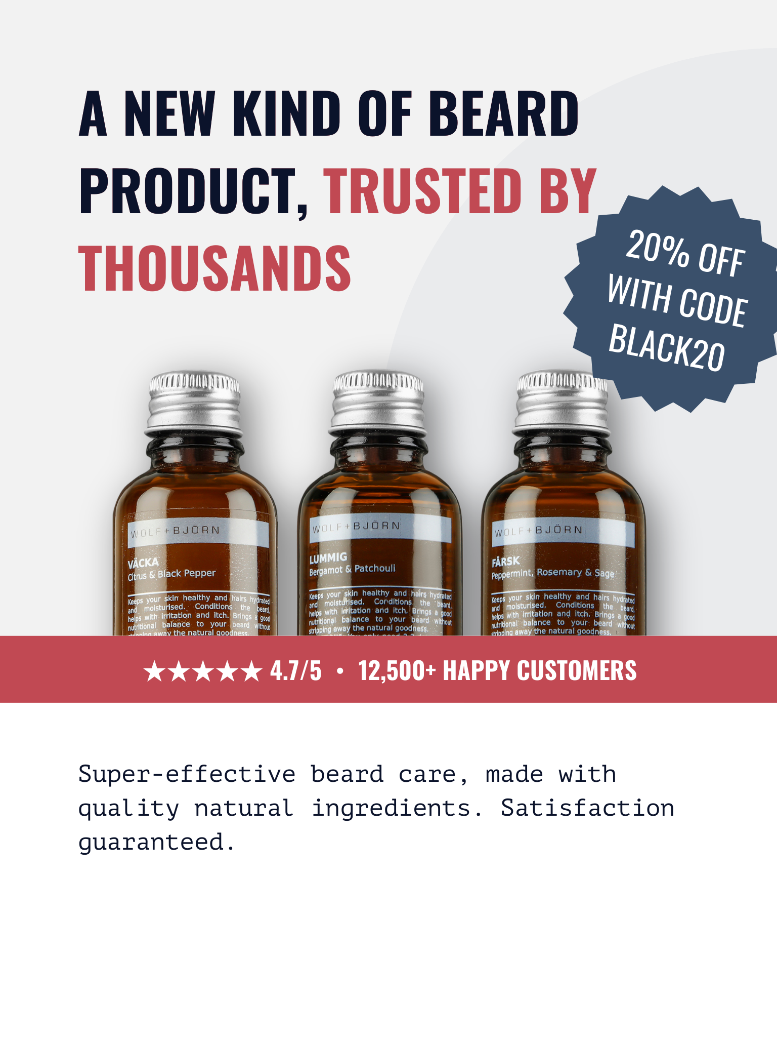 Trying to find the right products to style your beard, suffer from itching, irritation, dry skin or flaking then try WOLF+BJÖRN today!